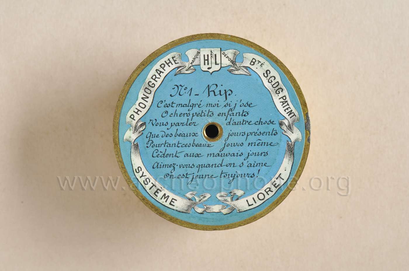 | Commentaire | Texte du contenu ci-joint. Henri Lioret n'a jamais eu la maîtrise technique de son propre brevet consacré au moulage et à la duplication des cylindres, c'est pourquoi on ne trouve jamais deux exemplaires de la même session d'enregistrement chez Lioret. Voir à ce propos : Henri Chamoux, La diffusion de l'enregistrement sonore en France à la Belle Époque, 2015, pages 204 à 214 du pdf. |