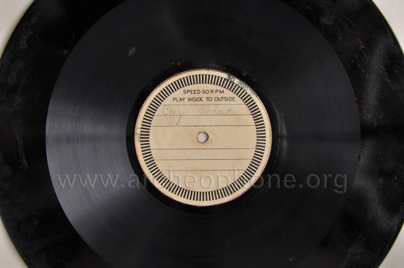 | Marque / Label | Acetate sur zinc très épais, Speed 50rpm – Play inside to outside (+ lignes de stroboscope) |
