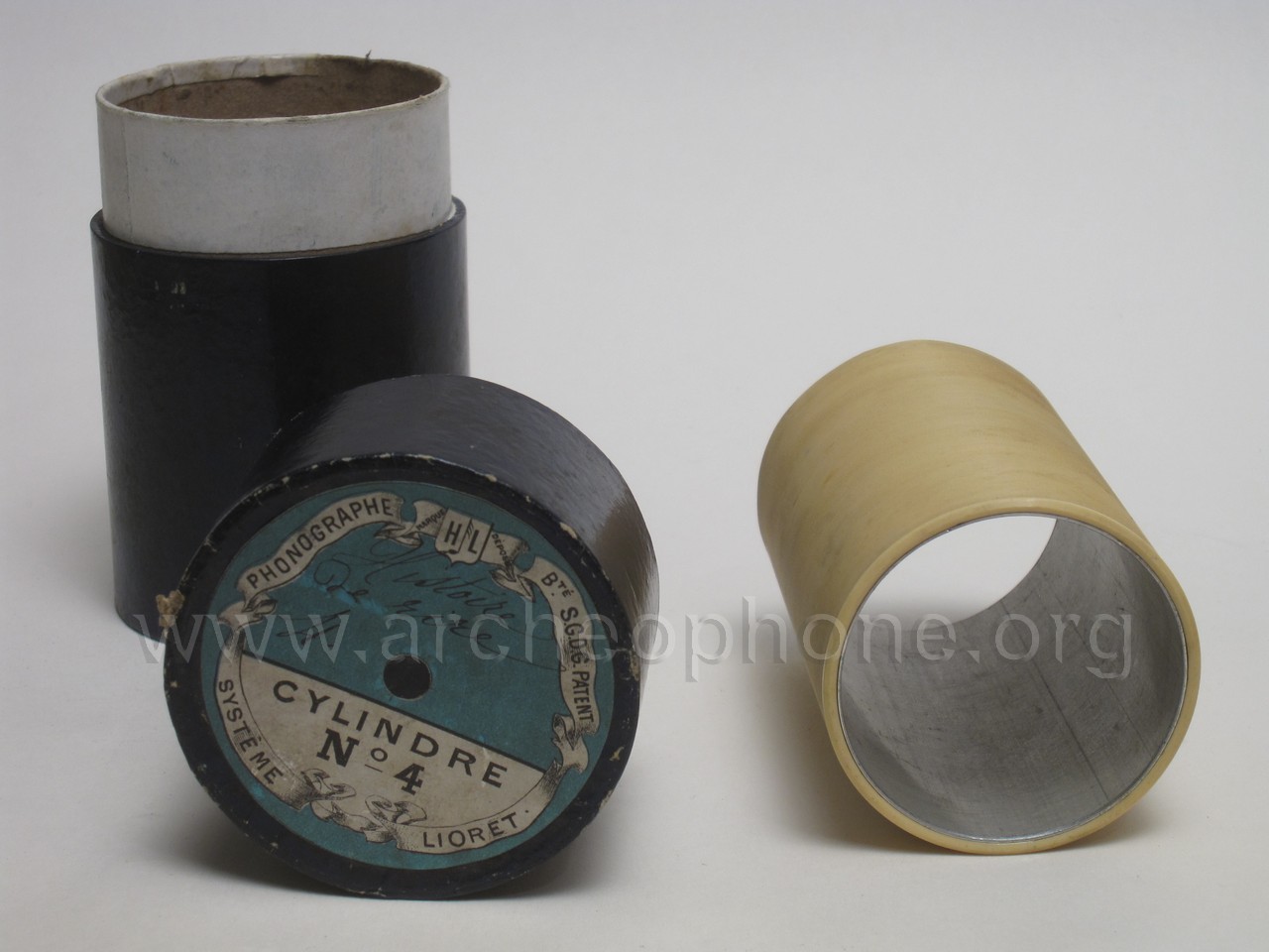 | Commentaire | Texte du contenu ci-joint. Henri Lioret n'a jamais eu la maîtrise technique de son propre brevet consacré au moulage et à la duplication des cylindres, c'est pourquoi on ne trouve jamais deux exemplaires de la même session d'enregistrement chez Lioret. Voir à ce propos : Henri Chamoux, La diffusion de l'enregistrement sonore en France à la Belle Époque, 2015, pages 204 à 214 du pdf. Sur le thème "tous les gendarmes rient dans la gendarmerie". Cylindre monté sur tube aluminium |